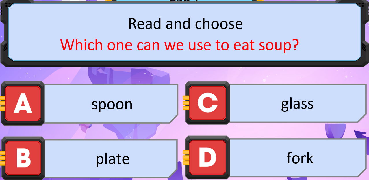 Which one can we use to eat soup?: Chúng ta sử dụng cái nào để ăn súp?