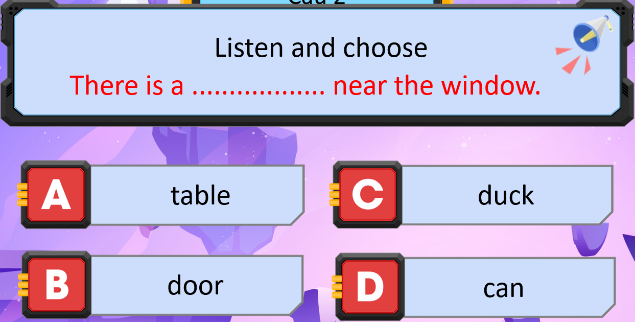 Giải thích: There is a door near the window.: Có một cái cửa ở gần cửa sổ.
