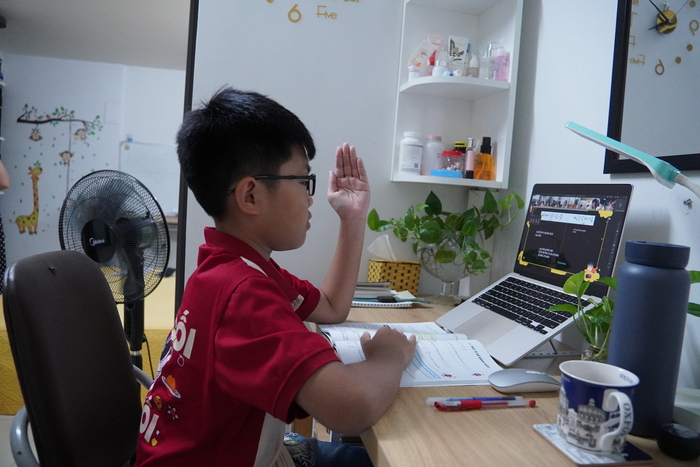 Học sinh học online trên ứng ứng dụng học tập của Vuihoc